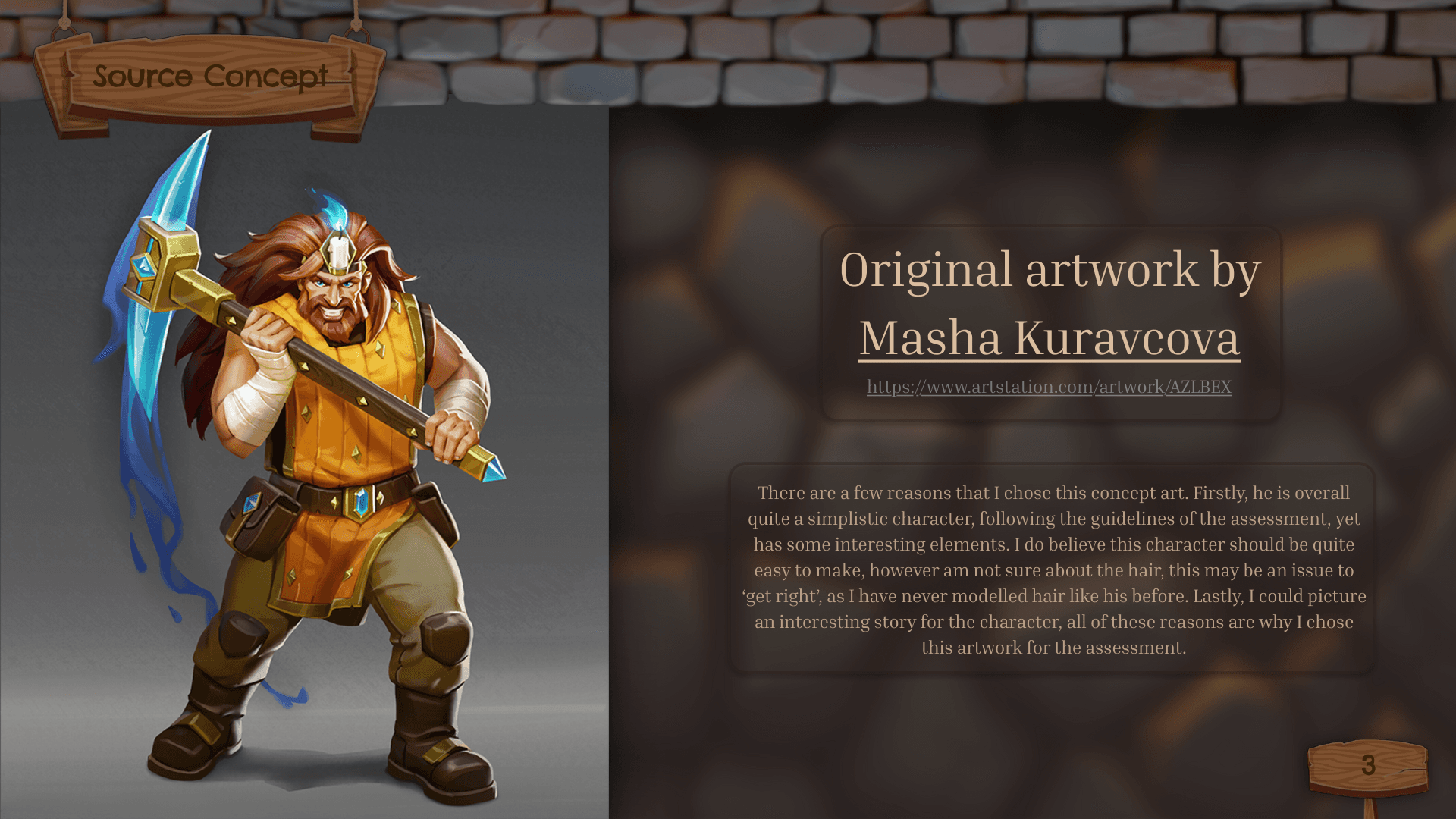 Completed via a professional game-ready pipeline. Highlighting optimization via reducing 47 million tris to a 22k, while maintaining a stylized, high-fidelity aesthetic. By blending narrative-driven design with clean PBR materials and efficient topology, this piece demonstrates a complete, engine-ready workflow for modern character development.