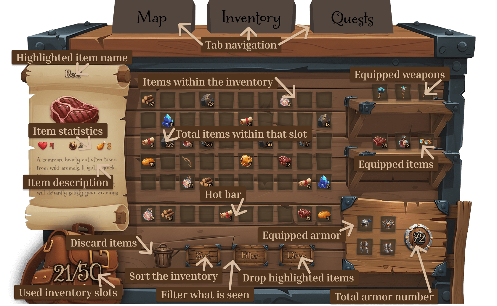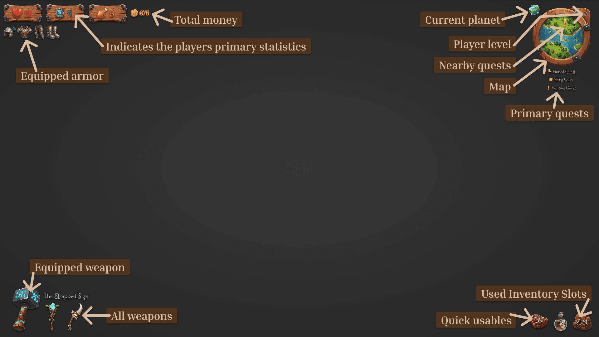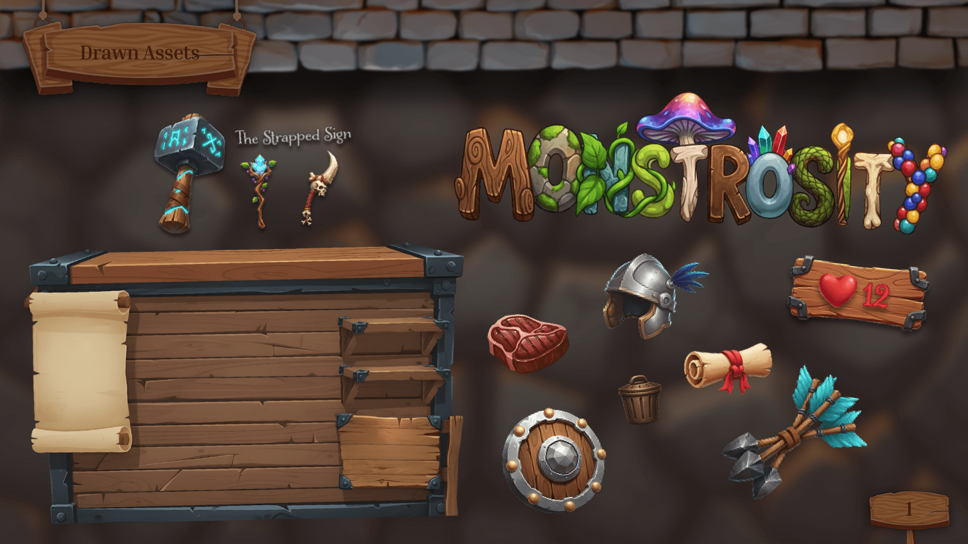 Monstrosity is an open-world sandbox survival adventure featuring a handcrafted Painterly, Vibrant, and Organic aesthetic. This project showcases a player-centered GUI design that balances skeuomorphic, hand-painted elements with a minimalist, contextual HUD to preserve immersion and reduce cognitive load.