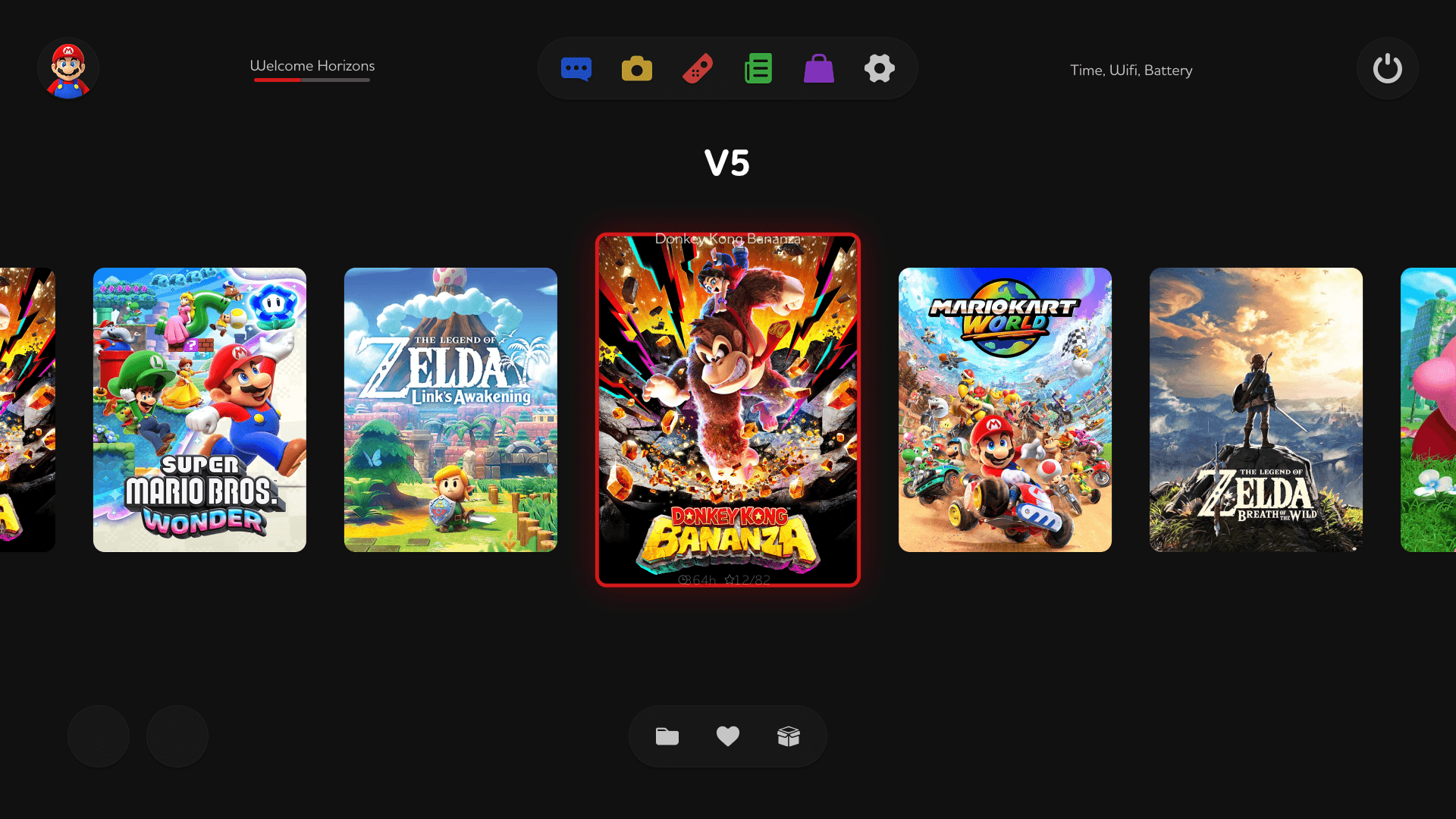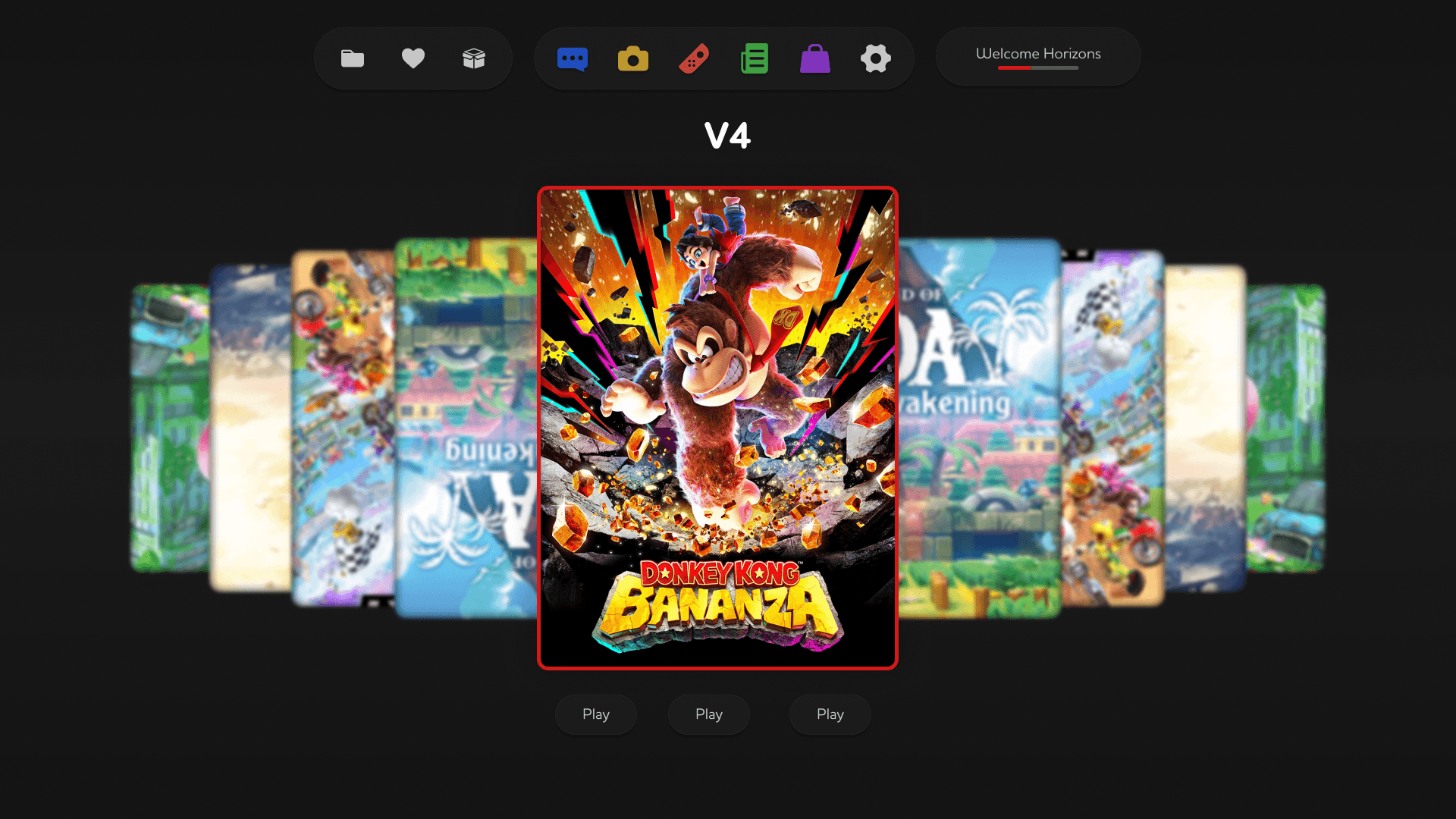 Refined Navigation Architecture: The top navigation bar has been condensed into a minimalist hub. By grouping System Settings, User Profiles, and Notifications into clean, recognizable icons, the layout eliminates clutter and keeps the focus on the game library.
