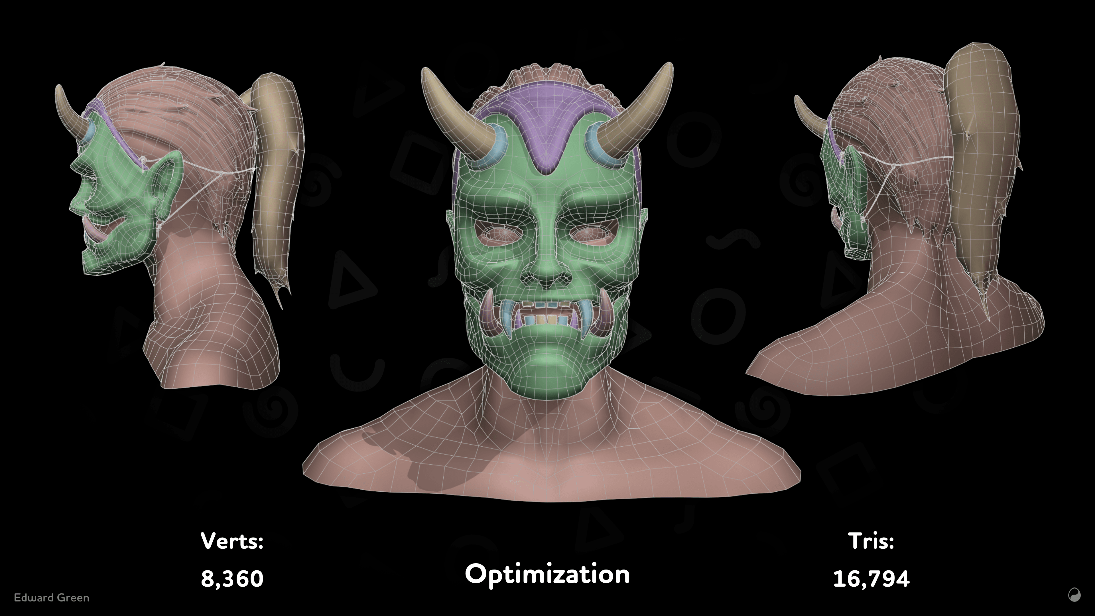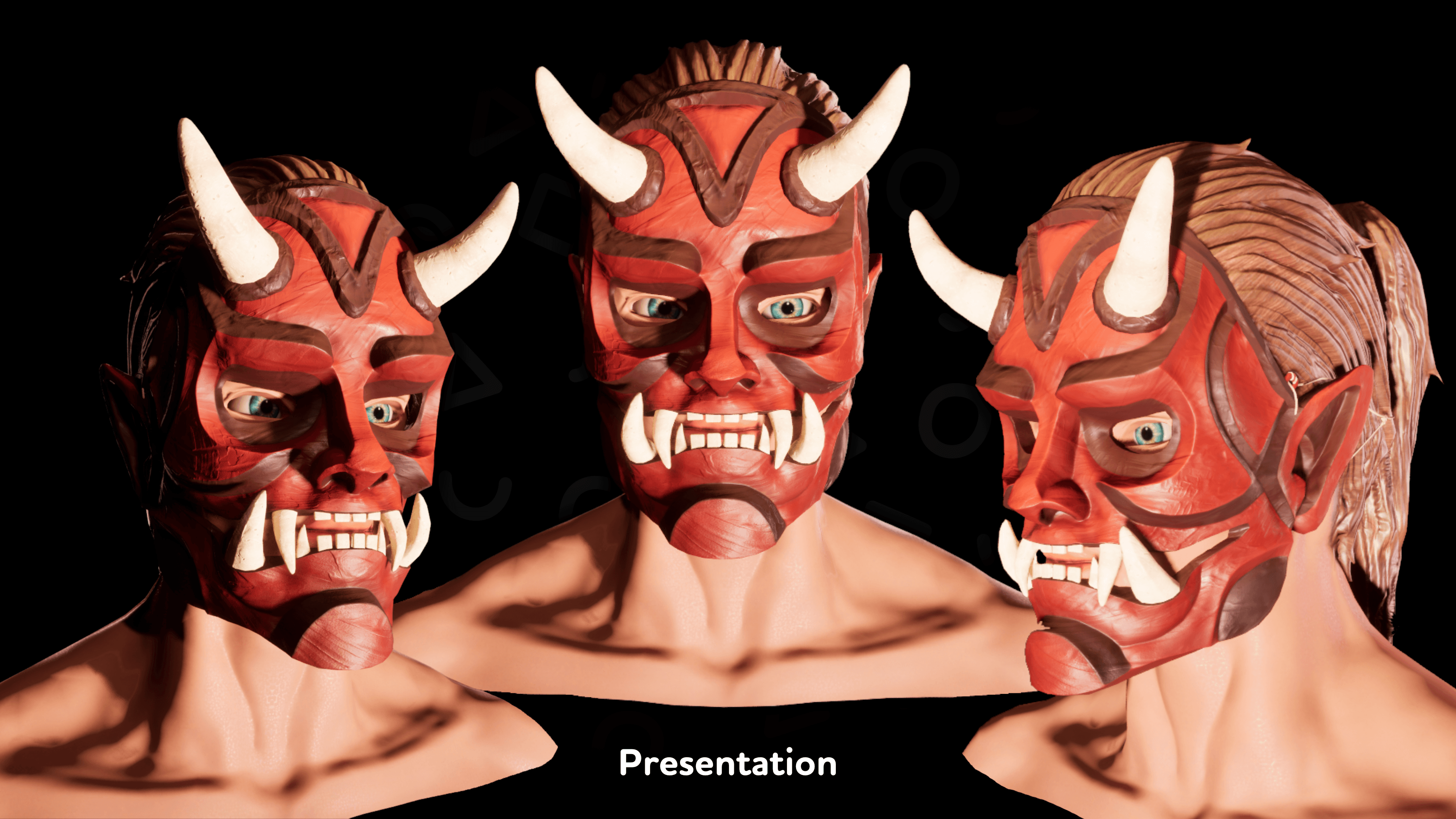 Developed in within 9 hours for an AIE Art Jam using the theme 'Mask'. This Oni Mask bust showcases a rapid, high-efficiency production workflow. The game-ready asset is optimized to 8,360 verts, utilizing a full PBR texture suite to achieve a polished, stylized finish. This project highlights technical proficiency and the ability to deliver high-quality results under strict time constraints.