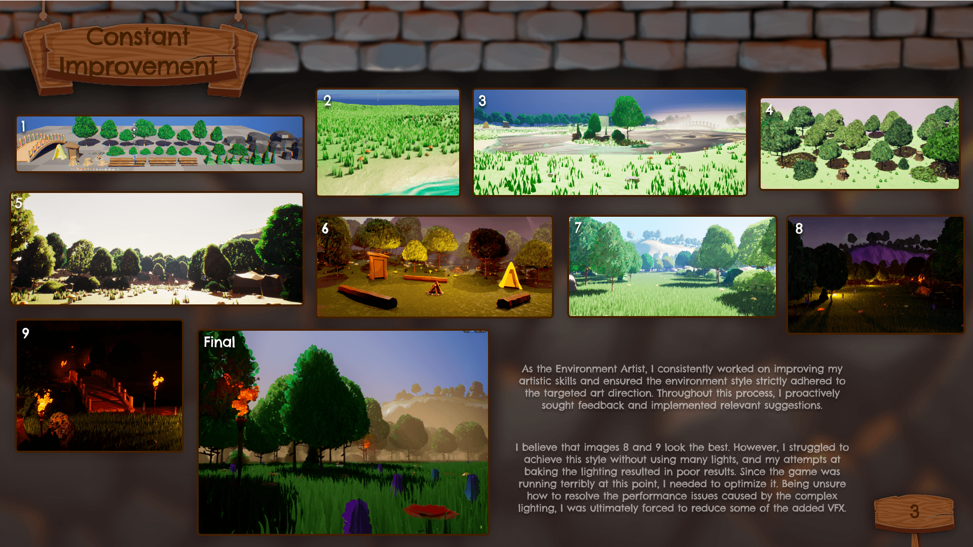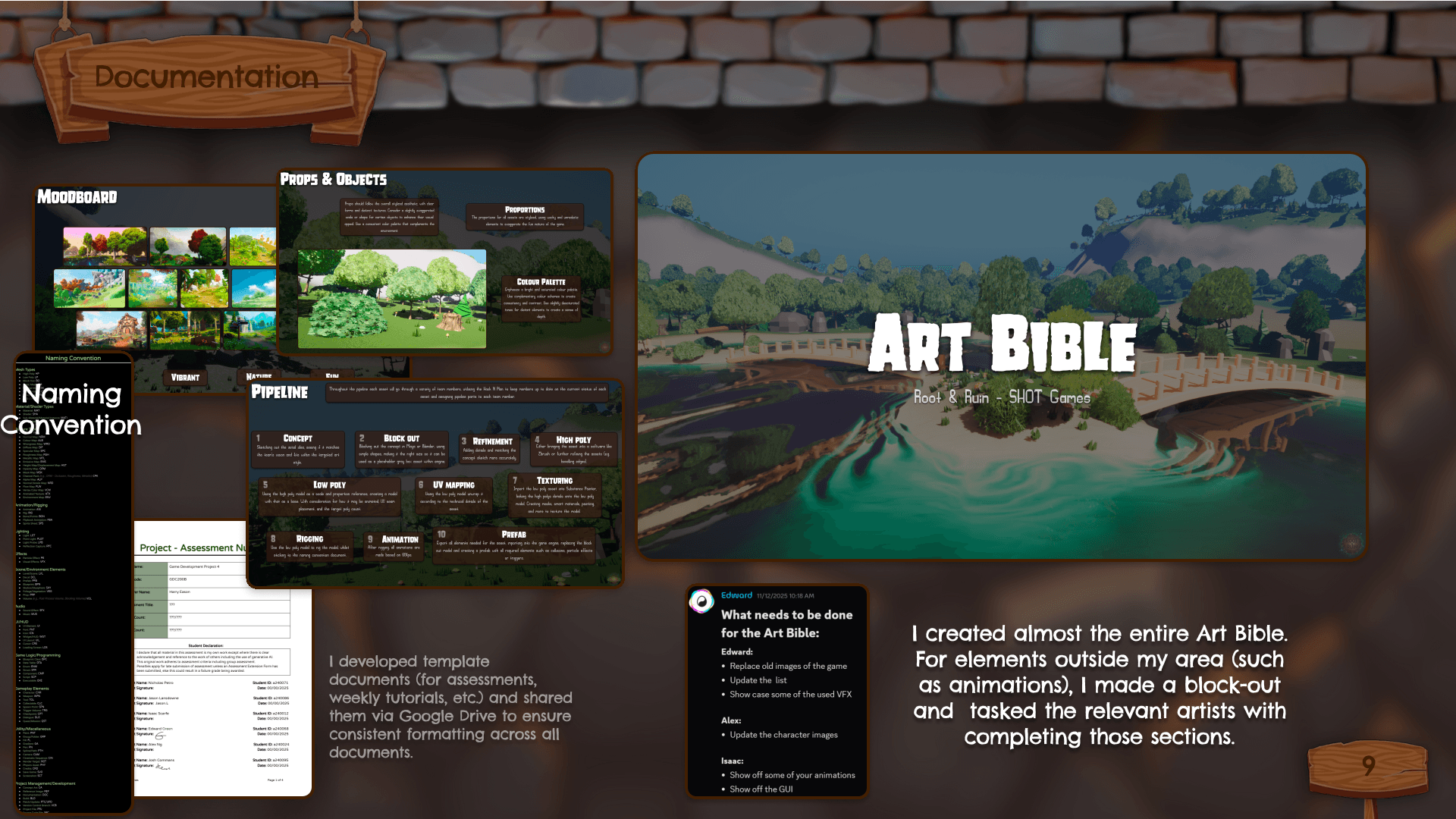 Root & Ruin is a stylized action-adventure title developed within a tight one-semester timeframe. As the primary Art Lead and Environment Artist, I spearheaded the visual direction, established a standardized asset pipeline, and managed cross-discipline documentation to ensure team cohesion and technical performance.